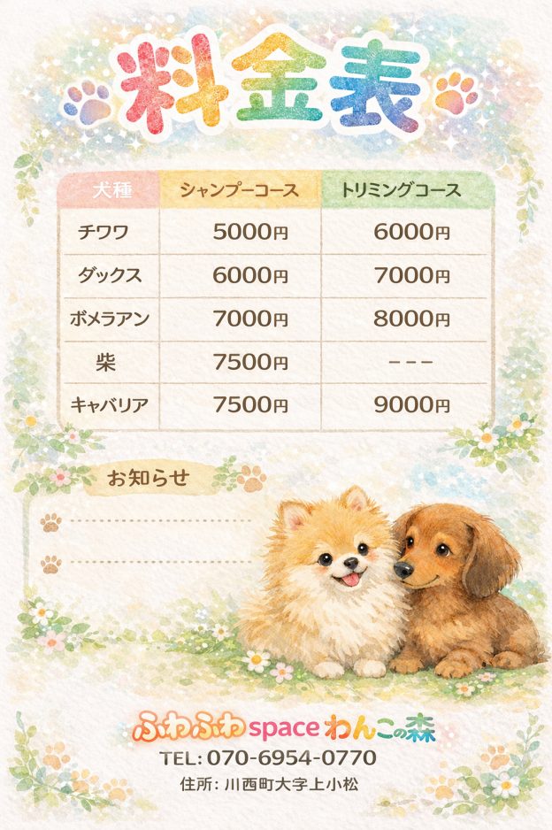 ※同じ犬でも料金が変動することもご理解ご了承ください。